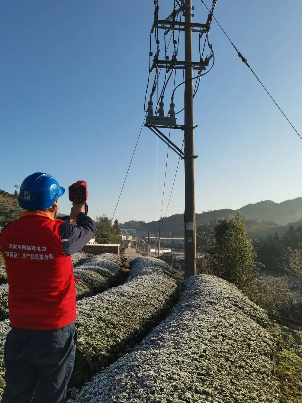1月23日,在福建省漳州市南靖縣高港村,國網南靖縣供電公司船場鎮供電所工作人員使用紅外測溫儀檢測設備狀況。(賴偉鋒 攝)