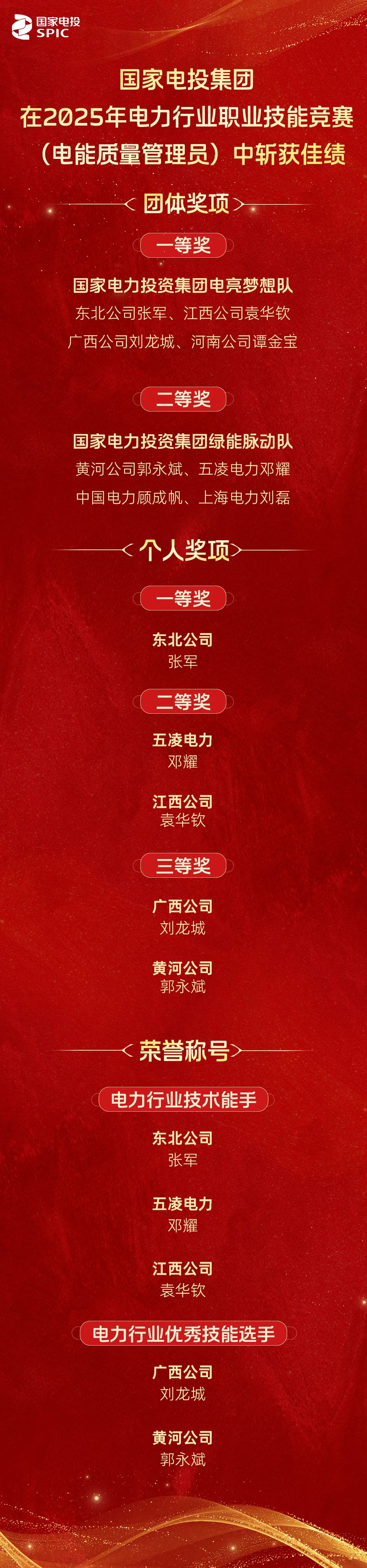 這些佳績的背后是選手們的刻苦鉆研與團隊的精誠協作他們專注打磨技藝用協作鑄就佳績為國家電投人樹立標桿讓我們以他們為榜樣沉下心鉆研業務,鉚足勁提升本領共同為國家電投集團高質量發展注入源源不斷的動力。
