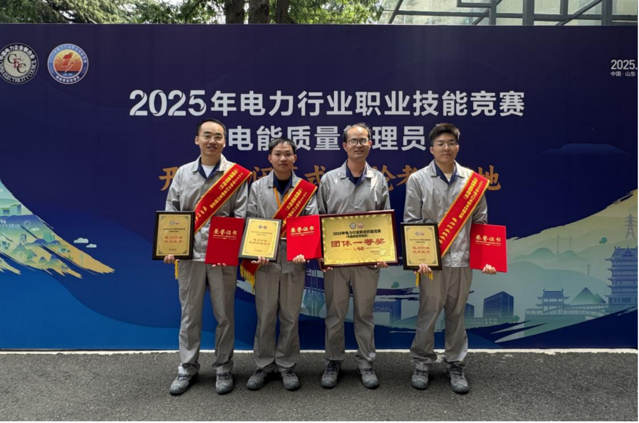 近日,2025年電力行業職業技能競賽(電能質量管理員)在山東臨沂收官。國家電投集團2支代表隊、8名選手在此次競賽中表現卓越,喜獲佳績。國家電投集團電亮夢想隊獲團體一等獎(發電組中唯一獲此殊榮),國家電投集團綠能脈動隊獲團體二等獎,國家電投集團東北公司張軍獲個人一等獎(發電組中唯一獲此殊榮)并被中電聯授予“電力行業技術能手”榮譽稱號,五凌電力鄧耀、江西公司袁華欽獲個人二等獎并被中電聯授予“電力行業技術能手”稱號,廣西公司劉龍城、黃河公司郭永斌獲個人三等獎并被中電聯授予“電力行業優秀技能選手”稱號。