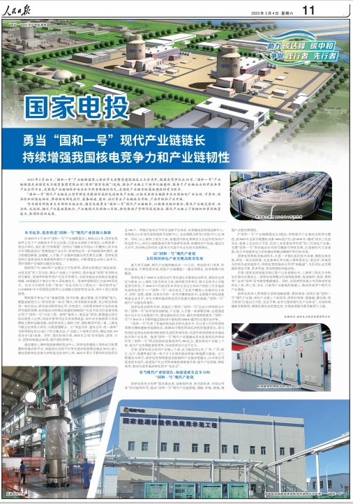 《人民日報》整版報道國家電投勇當“國和一號”現(xiàn)代產(chǎn)業(yè)鏈鏈長