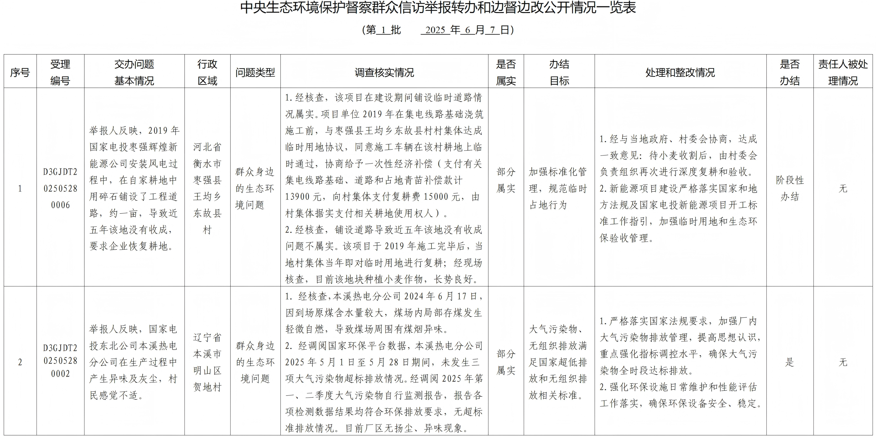 中央生態(tài)環(huán)境保護(hù)督察群眾信訪舉報轉(zhuǎn)辦和邊督邊改公開情況一覽表(第一批)