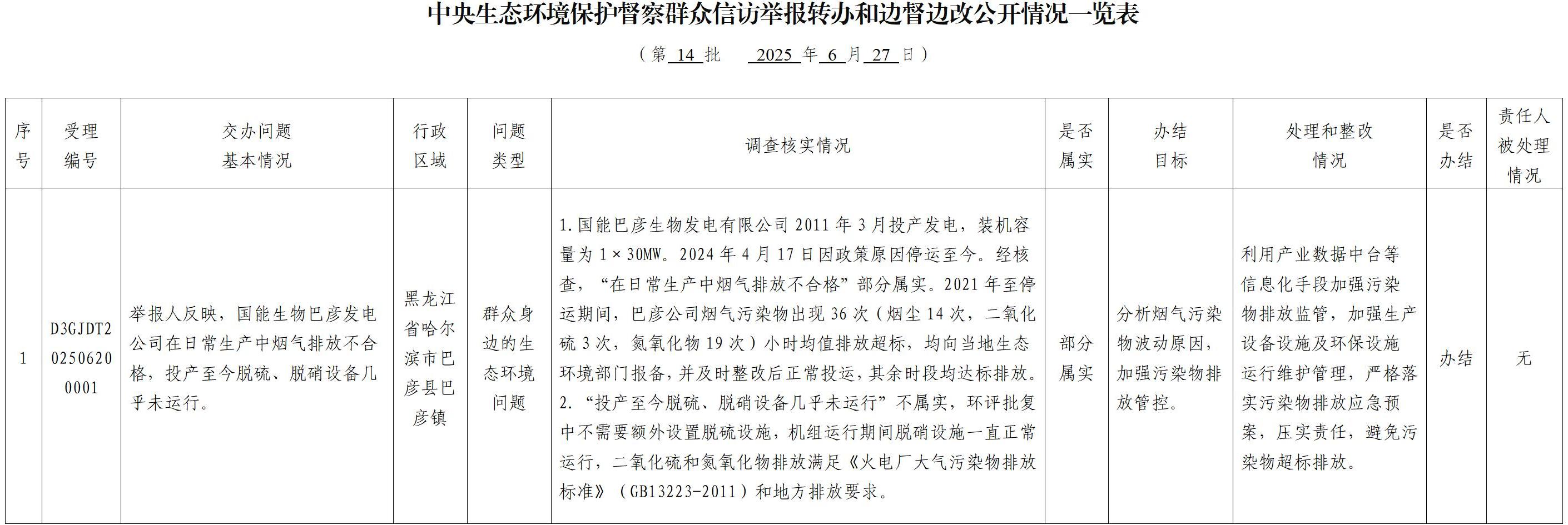中央生態環境保護督察群眾信訪舉報轉辦和邊督邊改公開情況一覽表(第十四批)